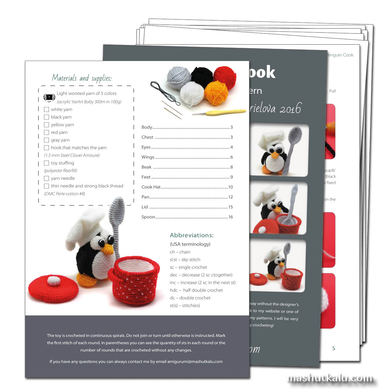- the toy is crocheted right side out in spirals. Eyes and white chest are crocheted wrong side out